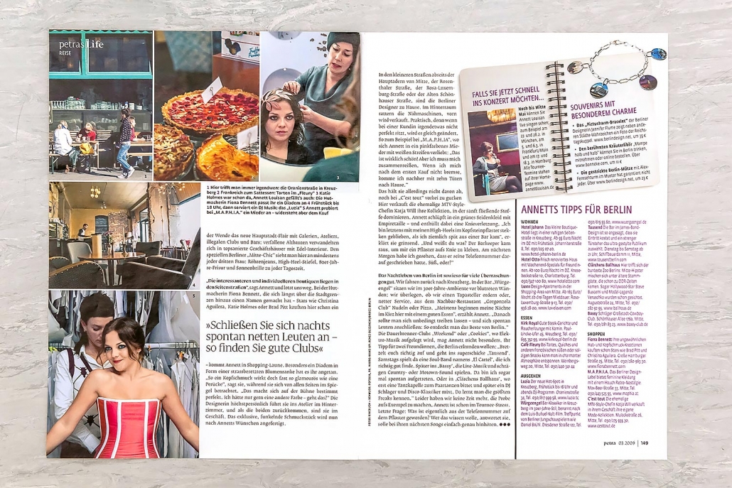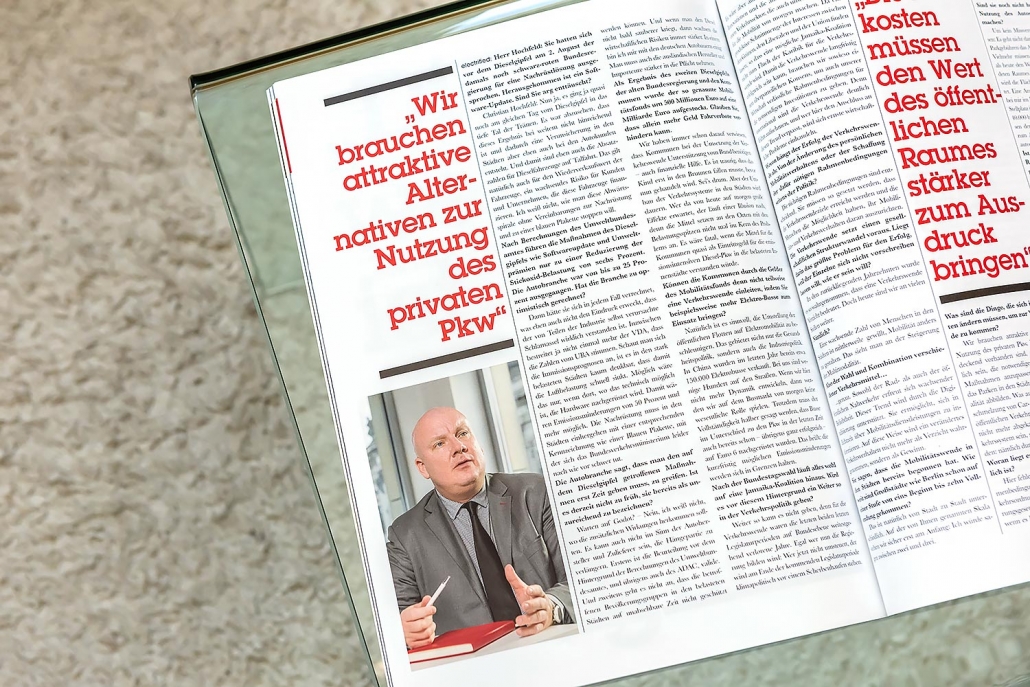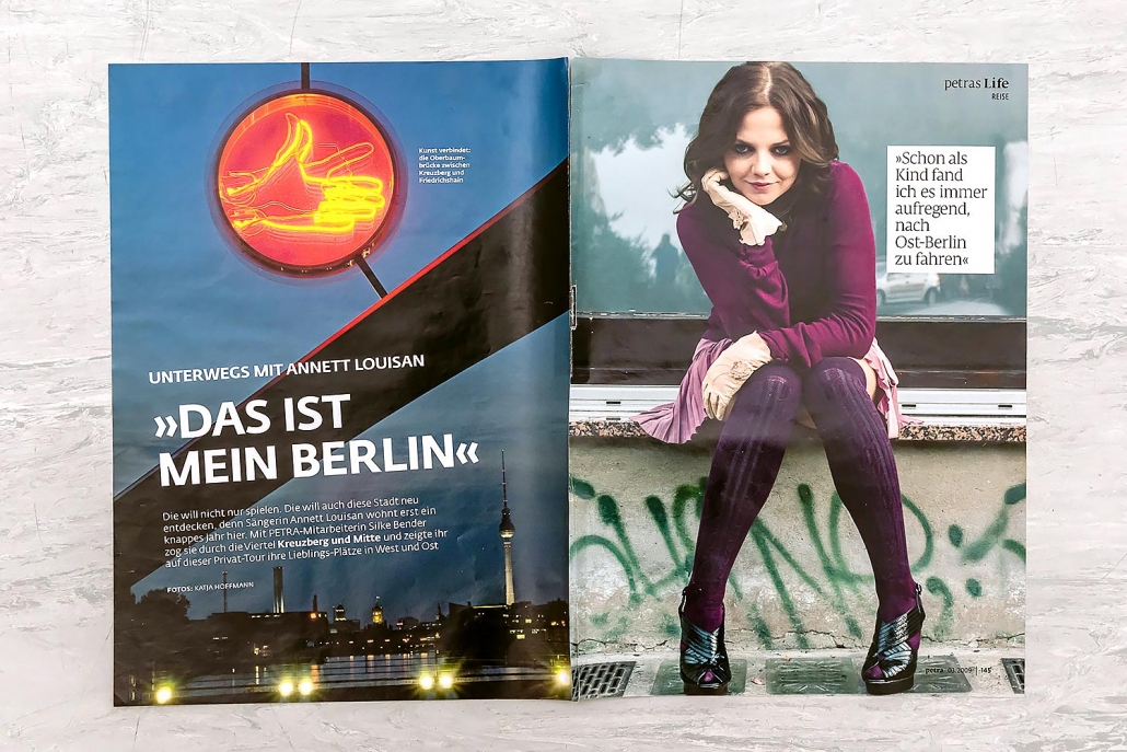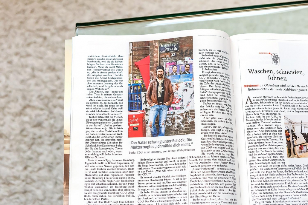 Christian Hochfeld, Agora Verkehrswende, electrified Nr001, 2017 / „Kommt ne Frau zur CDU“, Der Spiegel Nr25, 2015 / Annett Louisan „Das ist mein Berlin“, Petra Nr03, 2008 / Valencia, Calatrava, GEO Saison „Spanien“ Nr08, 2009 / Essen in Berlin, Saisonküche Nr11, 2008 / Private Kunstsammlungen Berlin, Merian Nr11 „Berlin“, 2007 /Die Menschen“, Hoyerswerda, brand eins Nr09, 2006 / „Hier ist noch Platz“, Deutsche Provinz, brand eins Nr08, 2005 / Hauptstadtklinik, Leib & Leben Nr03, 2004 / Herfried Münkler, Weltwoche Nr11, 2003 / „Stadt Land Flucht“, Allegra Nr11, 2001 / „Die etwas andere Golfschule“, Impulse Nr11, 2000