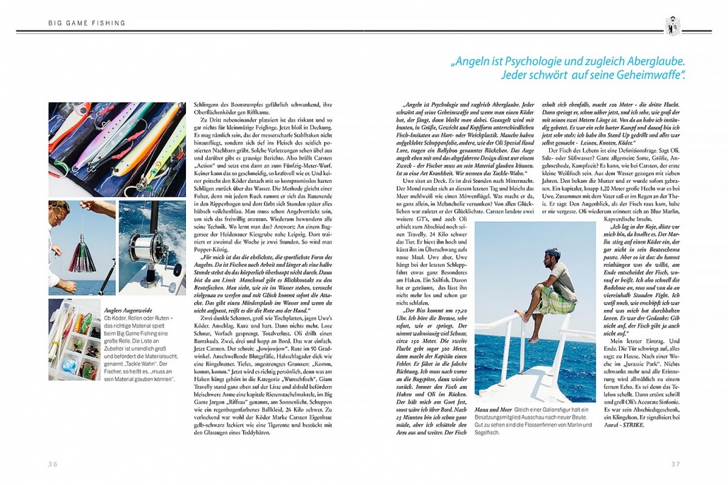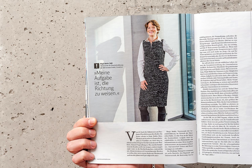 „Stadtleben“, degewo 03_2022 / „Semlin Kompakt“ u. „Golf Kompakt“ 2020, Semliner Hotelbetriebsgesellschaft mbH / Portrait Oliver Schuepbach, „Chancen“ KfW-Bank, 2017 / Frauen in Führungspositionen, „db mobil“, 2012 / Big-Game-Fishing Rotes Meer, „Berenberg-Magazin“, 2010 / Ökologisches Wohnen, „Wohnraum“ GSW, 2007 / Berliner Hauptbahnhof, Deutsche Bahn AG, Geschäftsbericht 2007