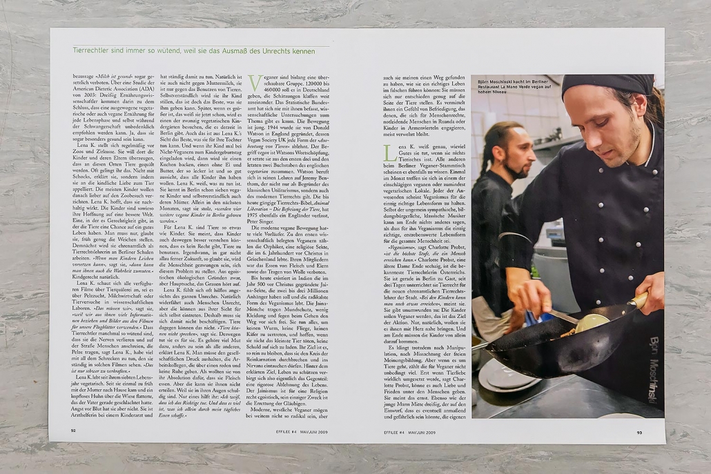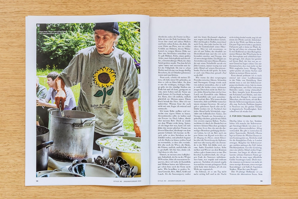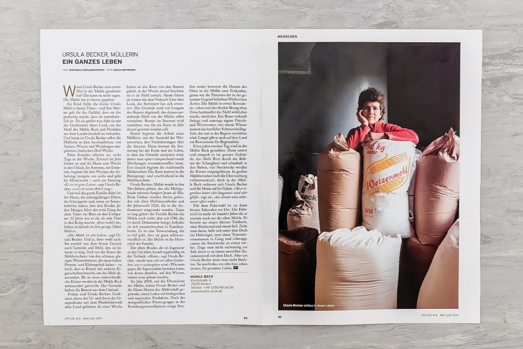 „Wenn es im Bauch stimmt, klappt’s auch im Kopf“, Ernährung als Heilmittel, Nr 10, 2010 / „Ein ganzes Leben“, Portrait Bäckerin Ursula Becker, Nr 10, 2010 / „Was aus uns wurde“, Selbstversorger, Nr 8, 2010 / „Nein, meine Freunde ess ich nicht!“, Veganismus, Nr 4, 2009