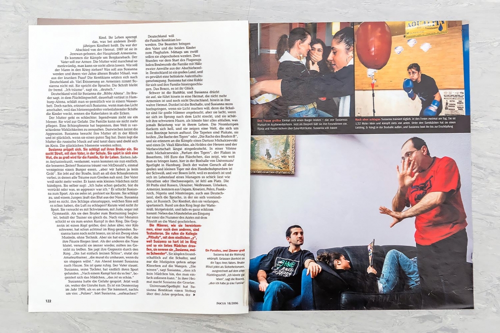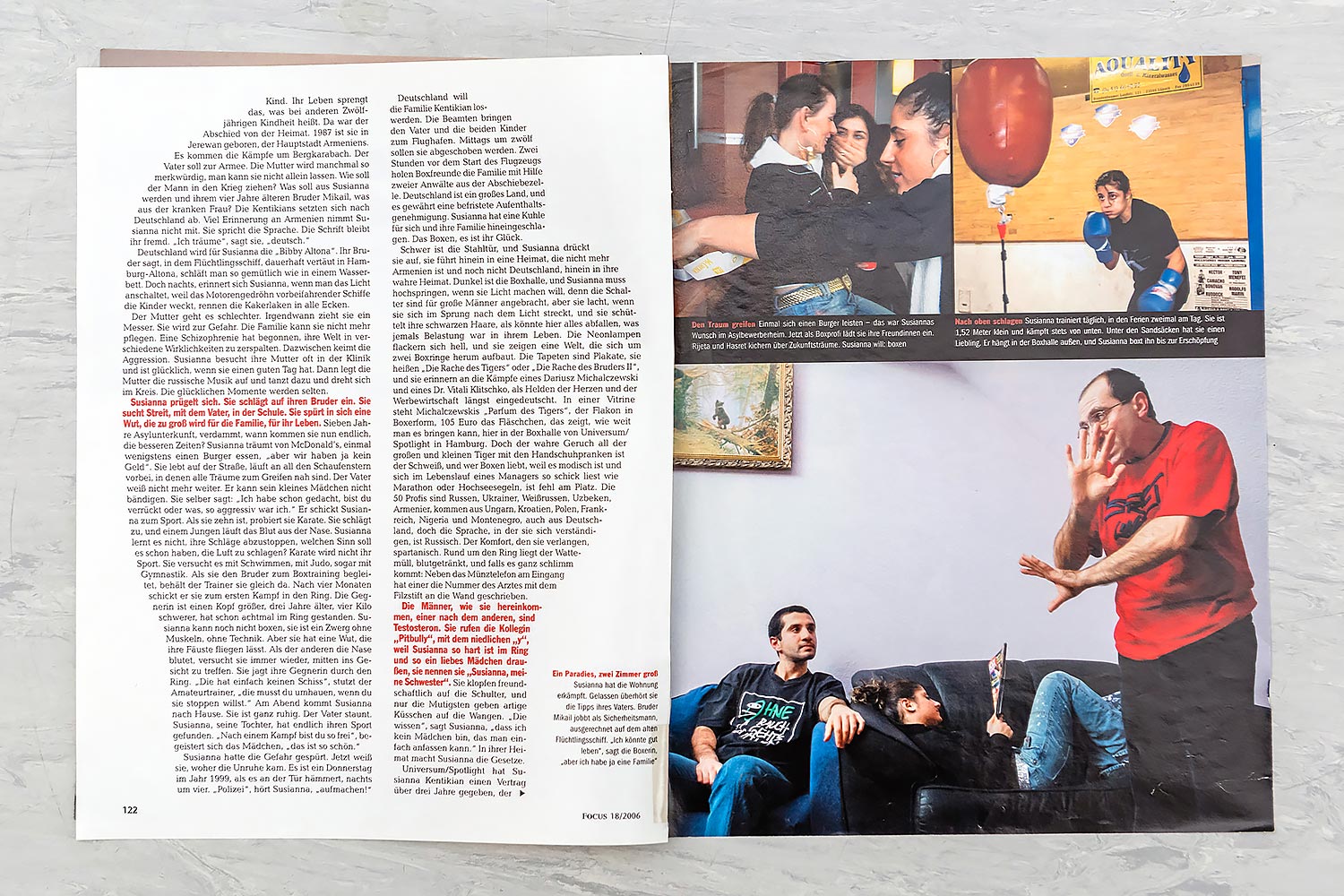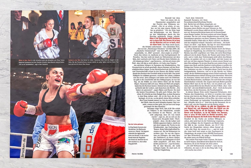 „Die neue Frauenbewegung“, Grace Summer Camp Berlin, 2019 / „Schulfach Glück“, Berliner Jean-Krämer-Schule, 2018 / „Fisch & Grips“, Chefkoch Arne Anker im Berliner Paulysaal, 2017 / „Der lächelte Pitbull“, Profiboxerim Susianna Kentikian, 2007 / „Last-Minute-Liebe“, Sextourismus in der Dominikanischen Republik, 2006 / „Reif für die Party“, deutsche Abiturienten in Lloret de Mar, 2002 / „Die Triebfabrik“, Pornoindustrie im San Fernando Valley, 2001