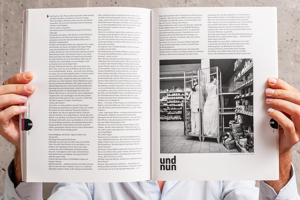 „Backcover“ with Fabrine Constantini & Andreas van Dühren, TEXT revue „Graphic“, 2013 / „New Found Land“, fixe Records, Cover (Vinyl & CD), 2012 / „020722_Barcelona“, TEXT revue „Avantgarde“, 2010 / „Decadent Void“, Radar Literaturmagazin, 2010 / „Jüdisches Berlin“, Cover Nr 78 & 79, 2005 / „Am Ende“, Kult Magazin, God-Issue, 2005 /  „Zur Sache Deutschland“, Literaturen, 2003 / „Freizeit“, Kult Magazin 5705, 2003 / Hongkong, Kult Magazin 5702, 2002