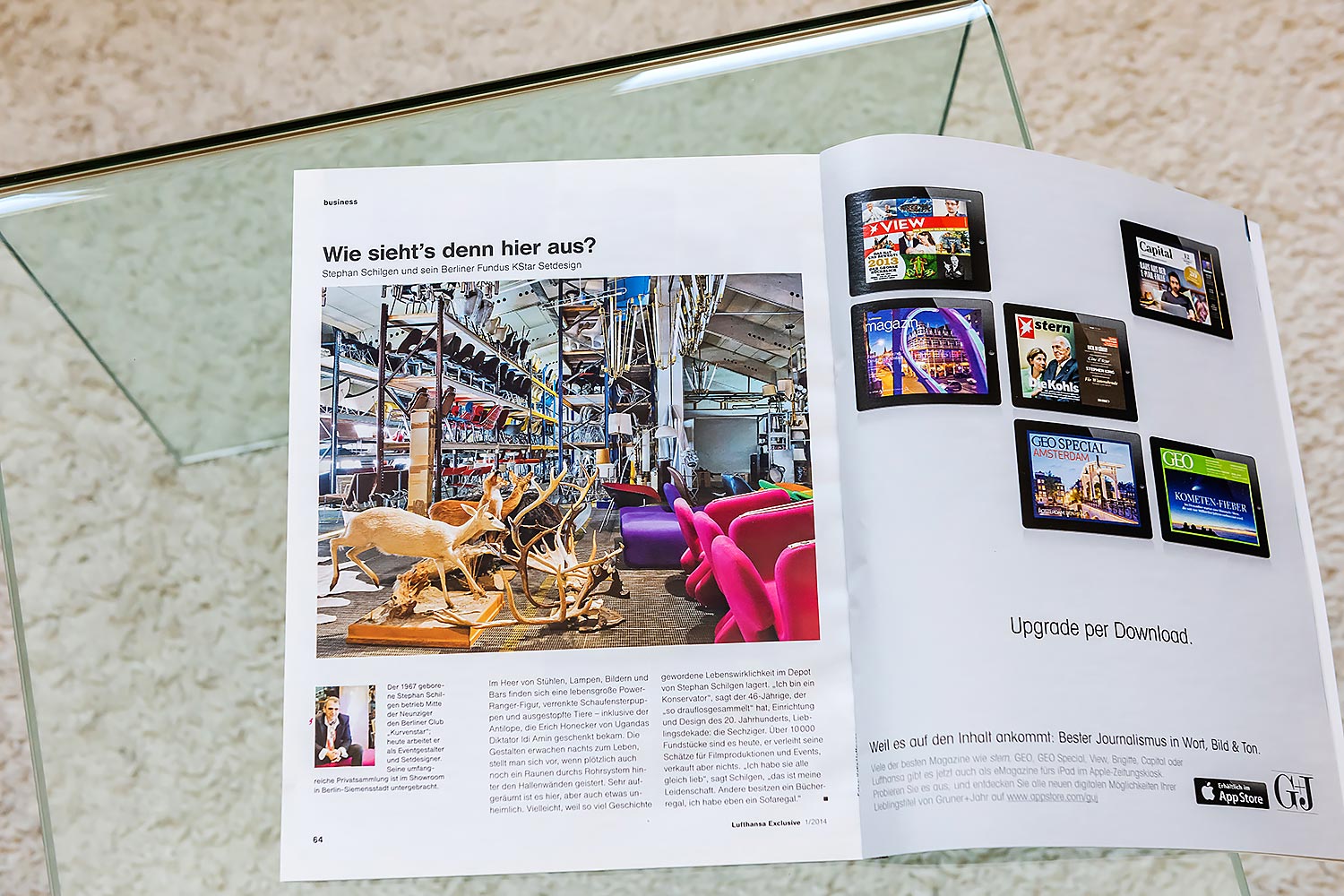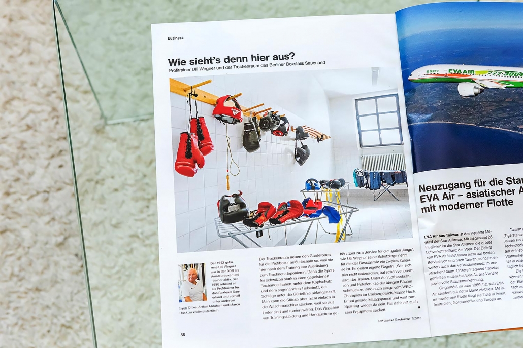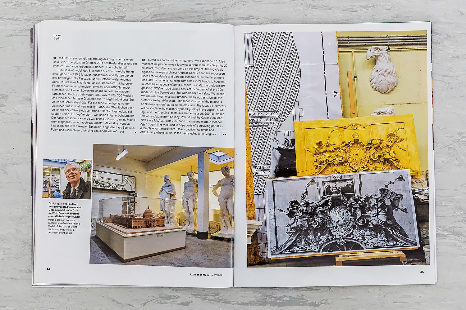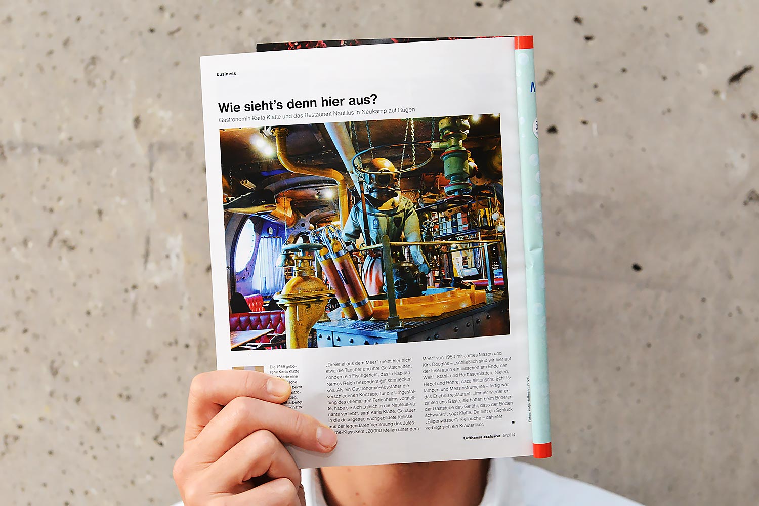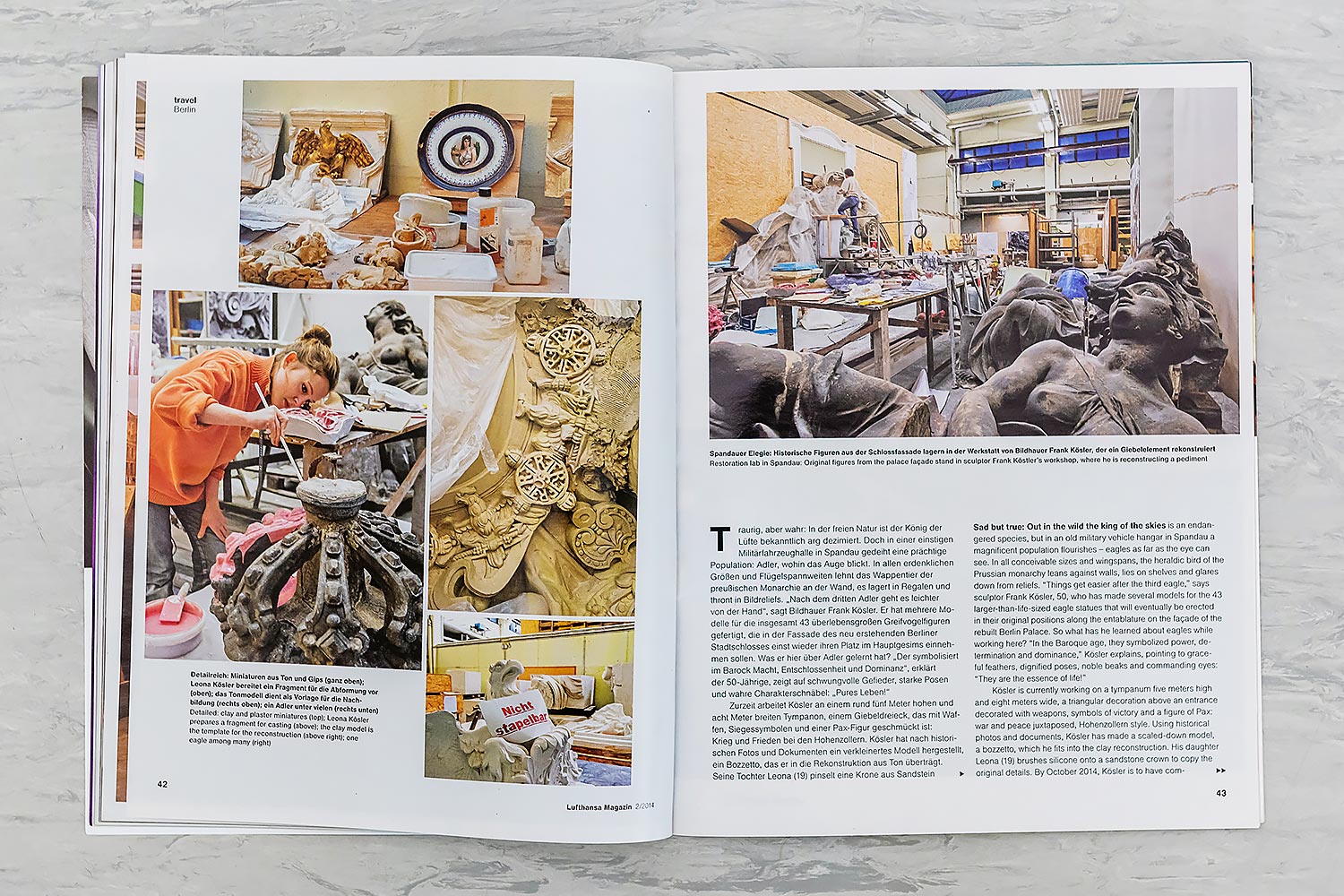 Victory Boards, Lufthansa Exclusive Nr 05, 2014 / Restaurant Nautilus, Lufthansa Exclusive Nr 05, 2014 / „Adler verpflichtet“, Berliner Schlossbauhütte, Lufthansamagazin Nr 02, 2014 / KStar Setdesign, Lufthansa Exclusive Nr 01, 2014 / Bildgießerei Noack, Lufthansa Exclusive Nr 11, 2013 / Boxstall Sauerland, Lufthansa Exclusive Nr 07, 2013 / Papiermanufaktur Pappenstil, Lufthansa Exclusive Nr 04, 2013 / Preußische Spirituosenmanufaktur, Lufthansa Exclusive Nr 02, 2013 / Ziegelmanufaktur Glindow, Lufthansa Exclusive Nr 08, 2012 / „It’s Showtime“, Hugo Boss backstage Berlin Fashion Week, Lufthansa Woman’s World Nr 03, 2009