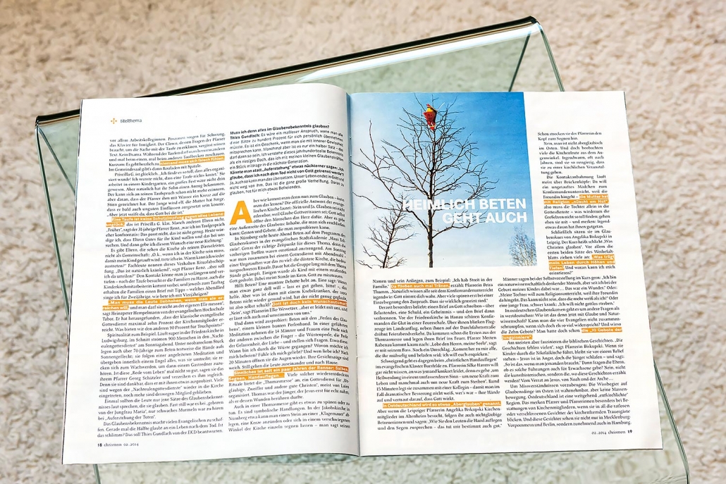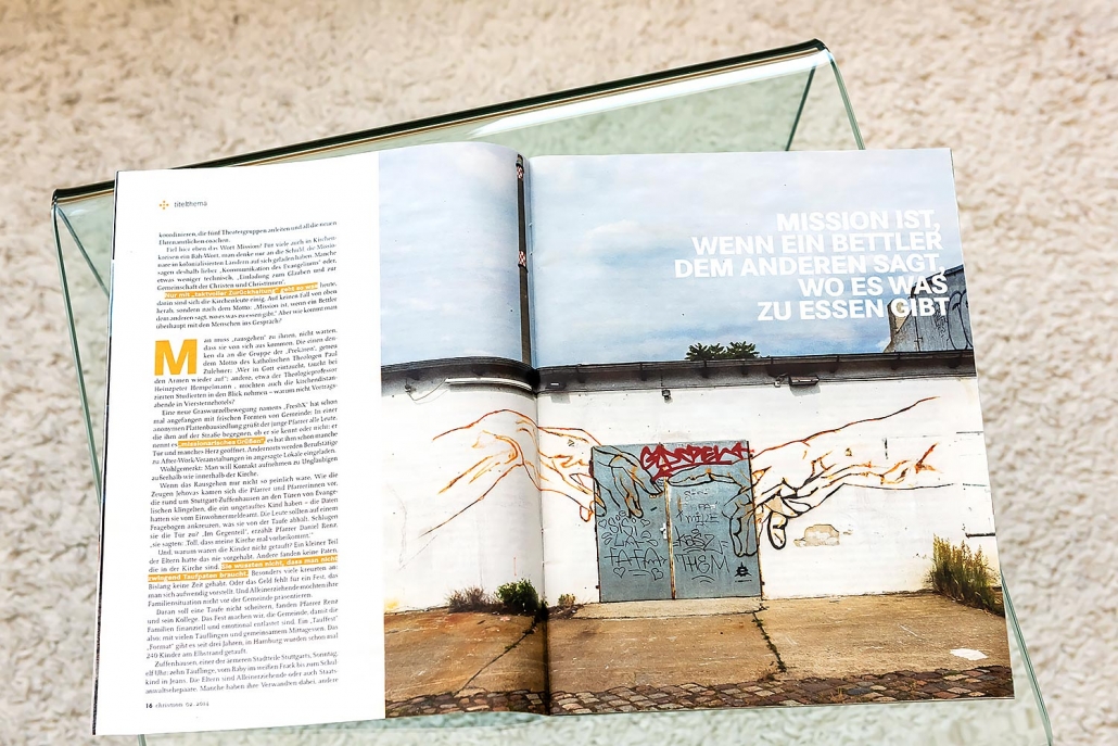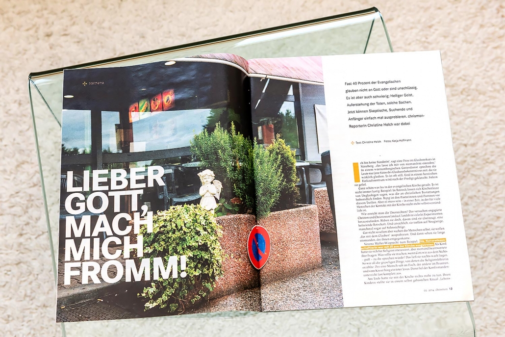 Titelthema Glaube, „Chrismon“ Nr02, 2014 / Willkommensklasse Kreuzberg, „Die Zeit“ Nr23, 2013 / Cover „Chrismon“ Nr05, 2012 / Aufmacher portal, „Chrismon“ Nr02, 2010 / Berlin Marzahn „Die Zeit“ Nr 40, 2009 / Tokio Hotel, „Sie+Er“ Nr08, 2007 / Thomas Brussig, „Algemeen Dagblad Magazine“, 2001